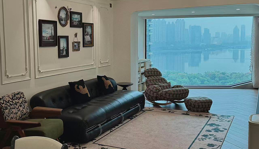 在施工过程中,阳台为楼房异形外结构,将其巧妙扩出,将其面坐江边。外扩阳台通往每个空间区域。...